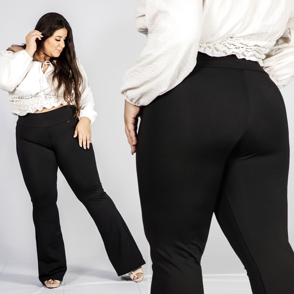 Calça Preta Pantalona Flare Boca De Sino Social Cós Alto Bailarina Plus Size