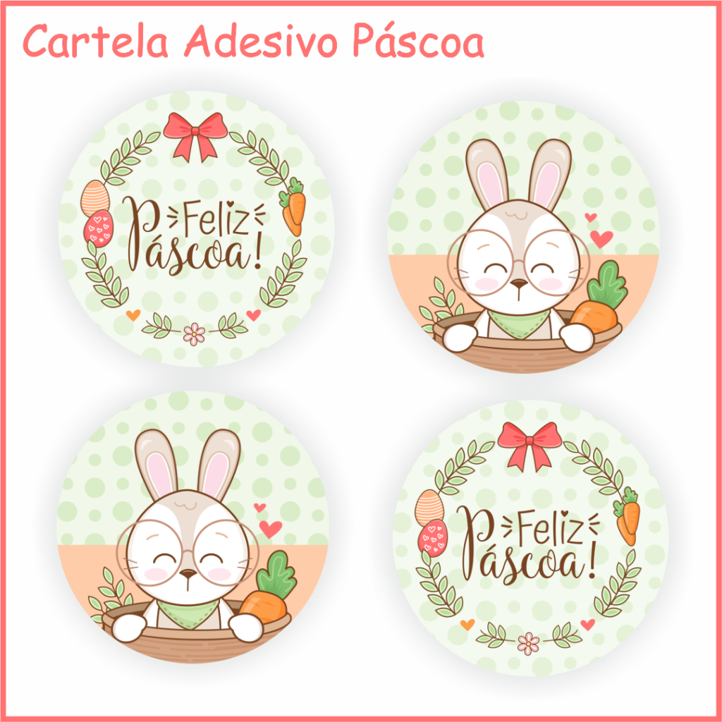 KIT 100 Adesivos Etiqueta Feliz Páscoa Cliente Coelho da Páscoa | Ovo de Pascoa 4x4