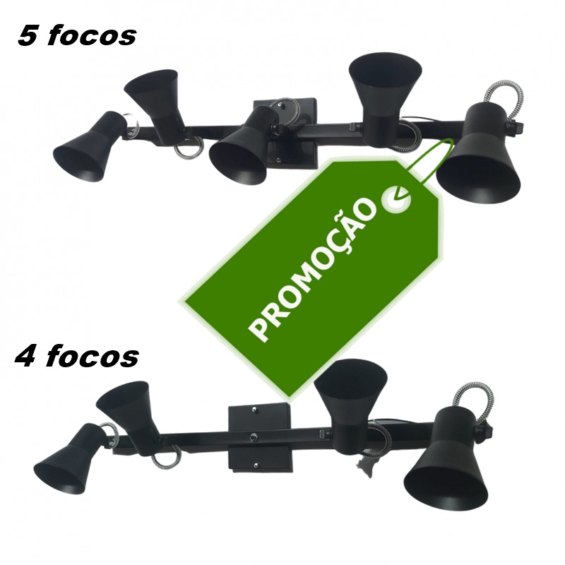 Trilho Spot Sino Luminária Pendente de teto 4 e 5 Focos Lampadas Direcionaveis PRETO/BRANCO Teto Casa Sala Cozinha Area Gourmet