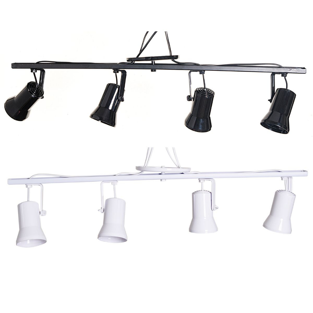 Luminária Spot Trilho 4 Lâmpadas Plástico E-27 Soquete Porcelana Direcionável Sino Branco ou Preto Casa Loja Cozinha Balcão Sykalight