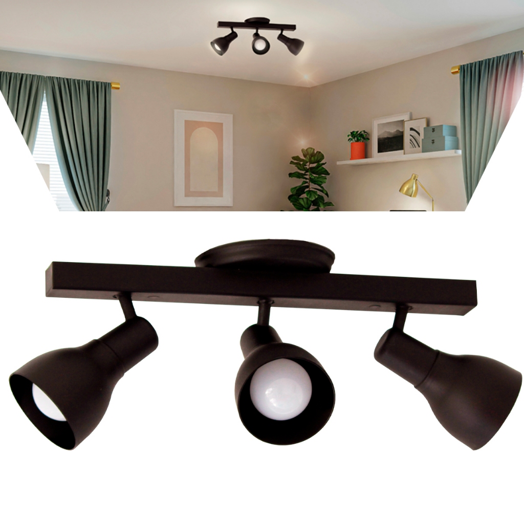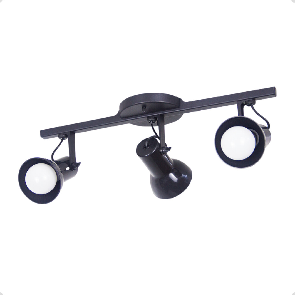 Luminaria de Teto Spot Trilho 3 Lampadas Direcionável Sobrepor E-27 Preto
