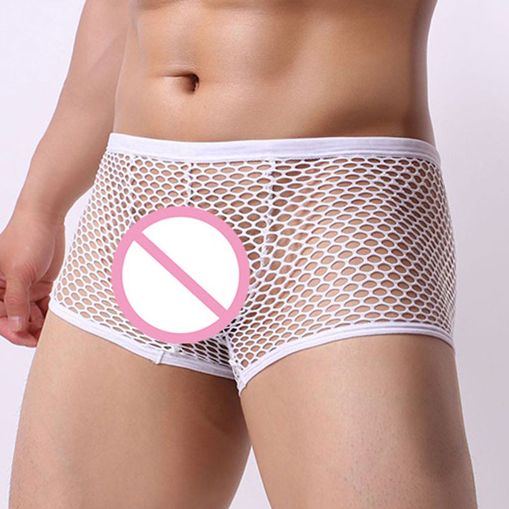Roupa interior masculina cueca boxer de malha grande plus size stretch preto ver-through roupa íntima masculina sexy