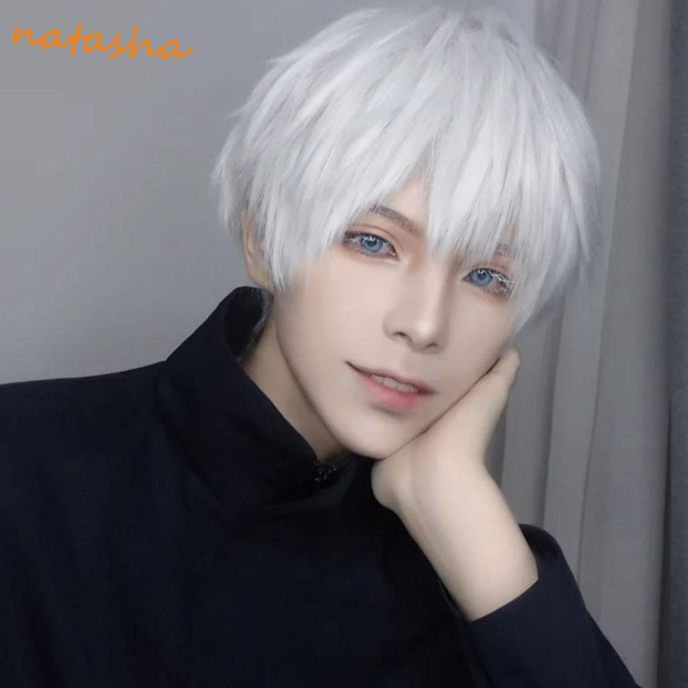 NATASHA Satoru Gojo Short Kaisen Jujutsu Heat Resistant Grey Cosplay Wig Men Wigs