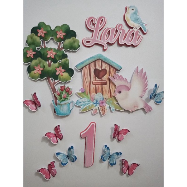 Topo de Bolo Jardim Encantado, vela de aniversário Jardim Encantado Biscuit ( envio imediato)