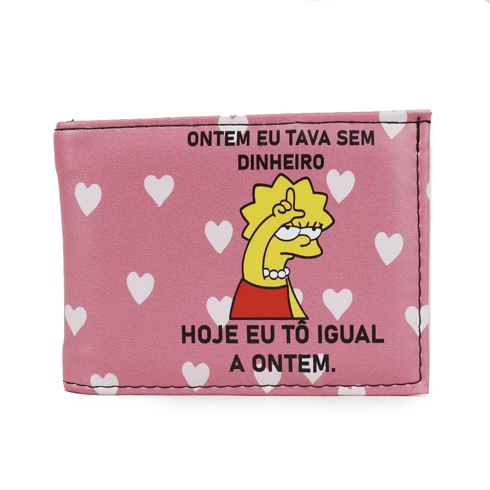 Carteira Porta Cartão Slim Pequena Unissex Personalizada Desenho Simpsons Lisa / Bart e Homer
