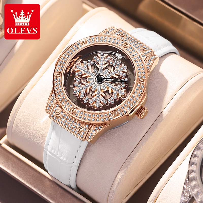 OLEVS 9938 Relógio Feminino Original Autêntico Floco De Neve Pentagonal Relógio De Couro