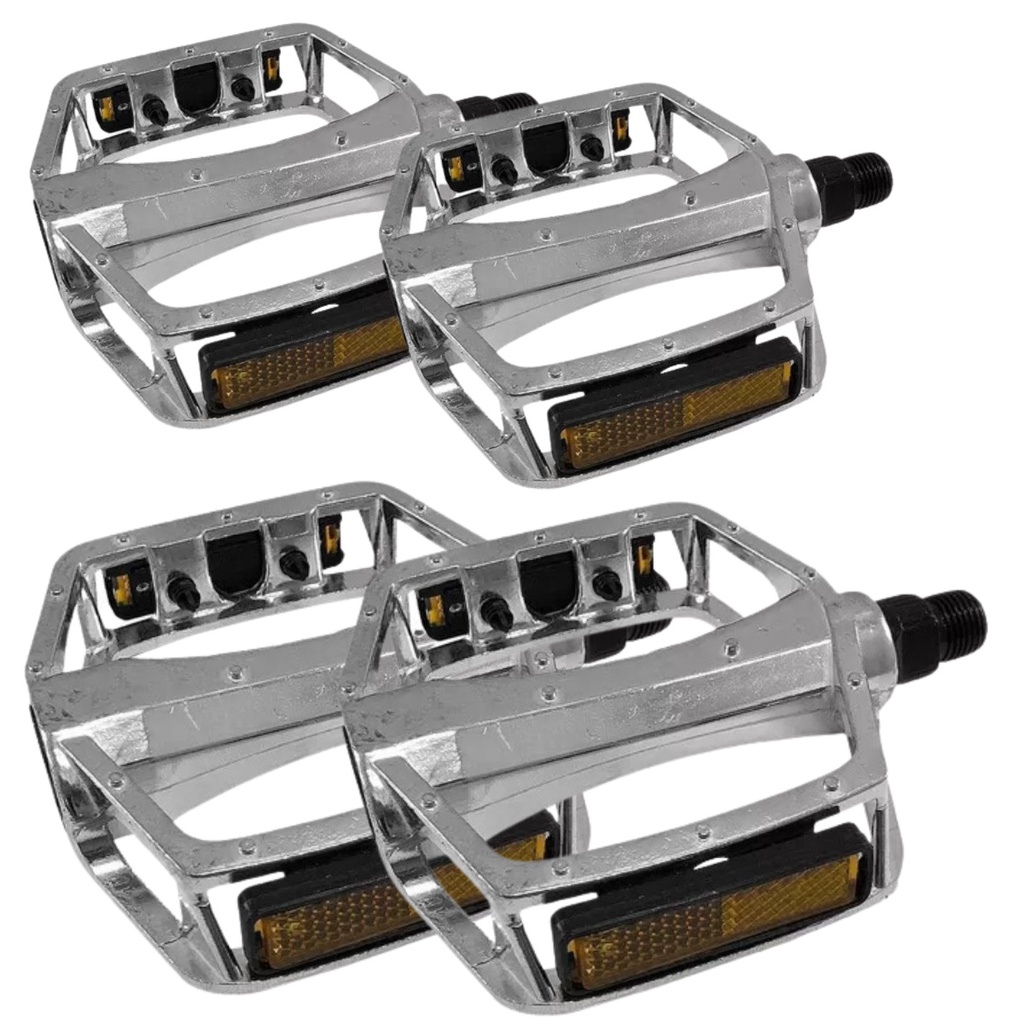 Pedal Bicicleta Plataforma Alumínio Polido Par 1/2 Ou 9/16 Rosca Fina Sueco Rosca Grossa Ingles Resistente Com Refletor Básico Estiloso Bike Bicicleta