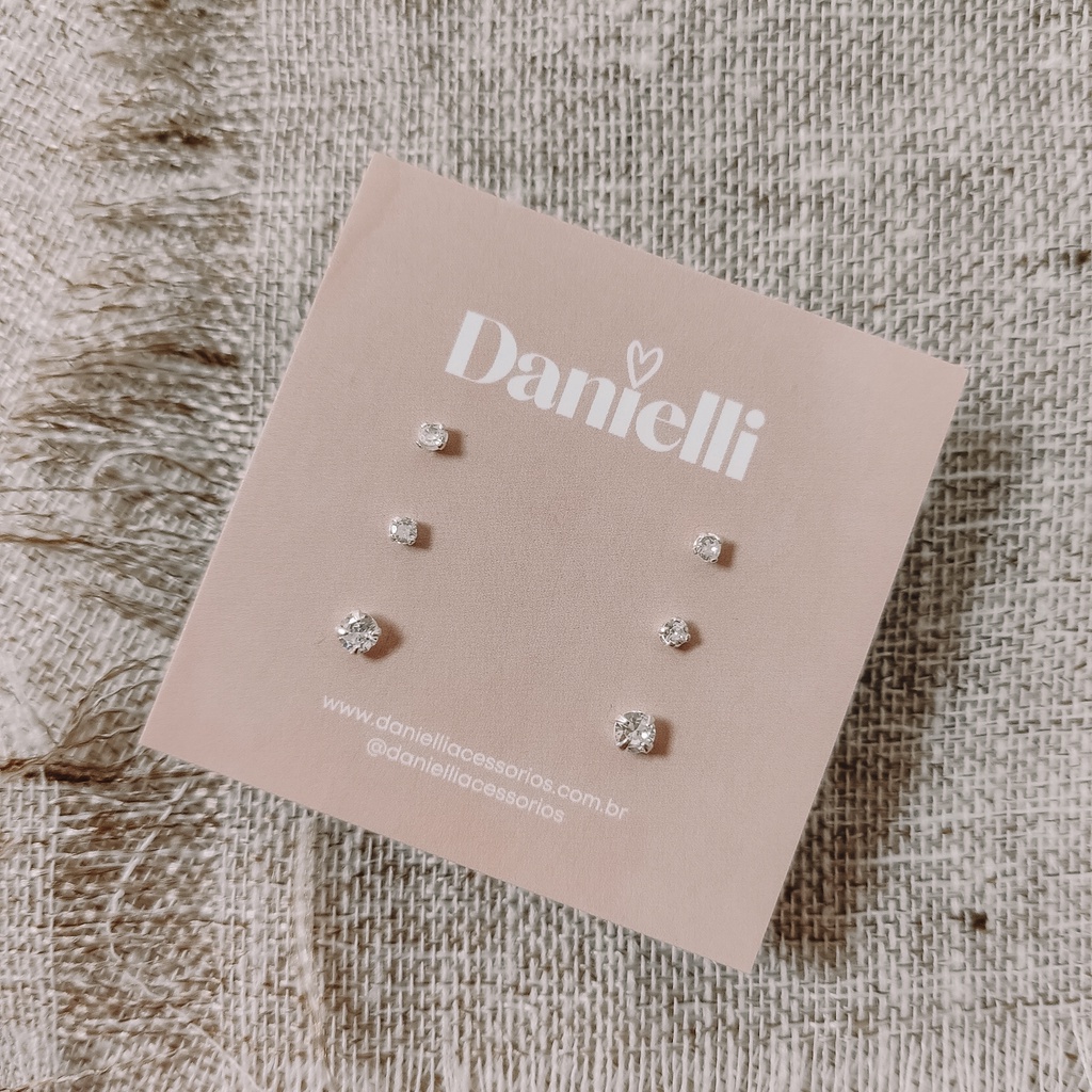 KIT COM 3 PARES DE BRINCOS PRATA 925 COM PEDRA EM ZIRCONIA PONTO DE LUZ