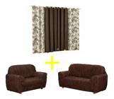 Kit Capa De Sofá + Cortina 2 Metros Estampada Conjunto Sala