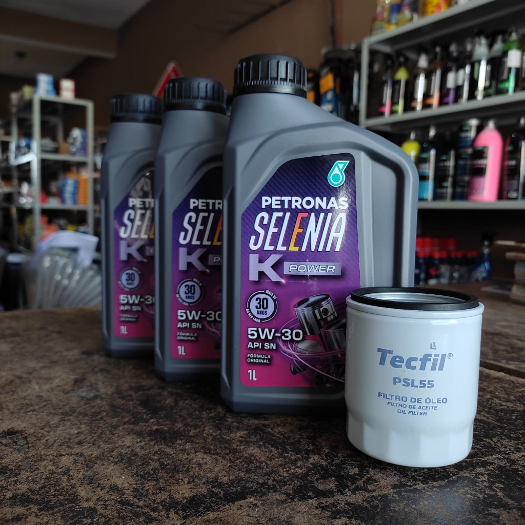 Kit Troca de Óleo linha Fire Flex. 3 Litros de Óleo 5W30 Petronas Perform 100% Sintético e Filtro de Óleo PSL55/TM5 Tecfil. Novo UNO, Palio, Strada, Doblo, Fiorino etc...