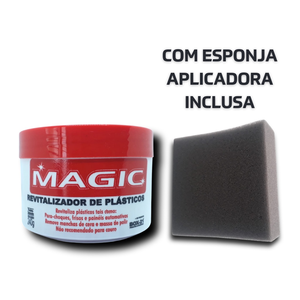 Revitalizador de Plásticos Magic Box-21 240g Com Esponja Aplicadora Para Painel Frisos e Parachoque