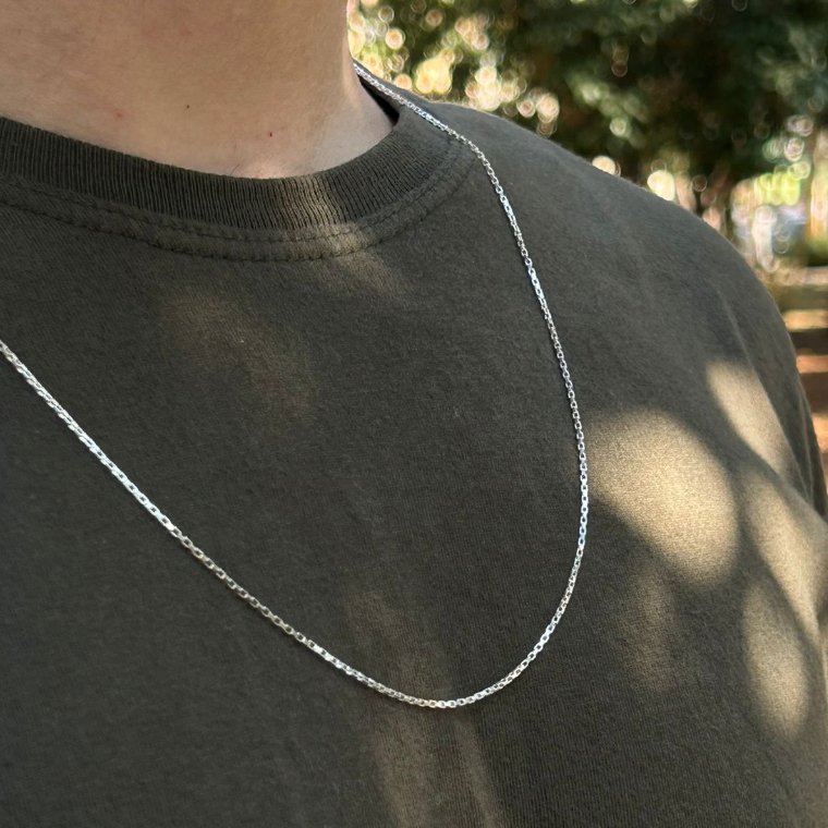 Corrente Fina Cordão Masculino Banhado a Prata 925 Veneziana 60 cm