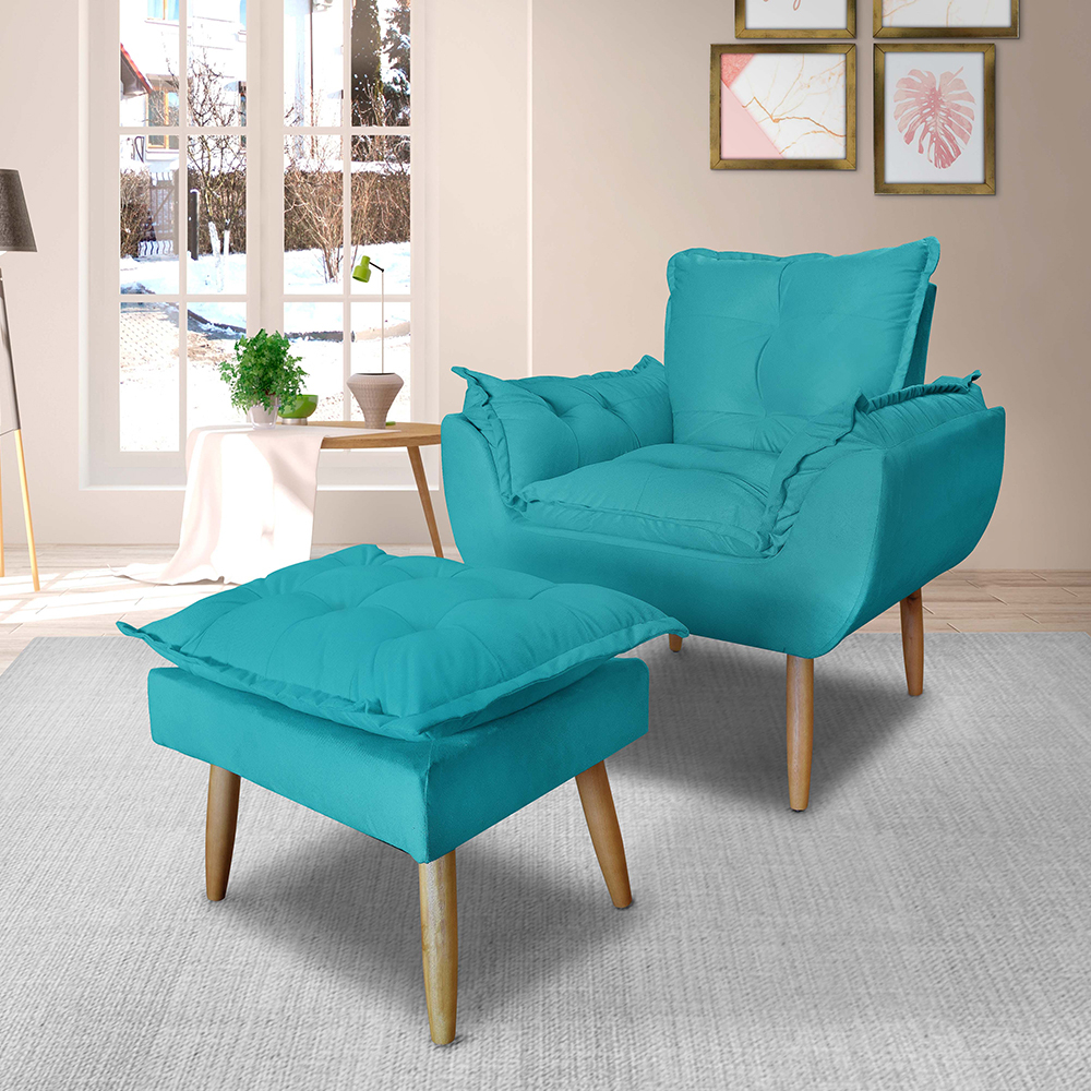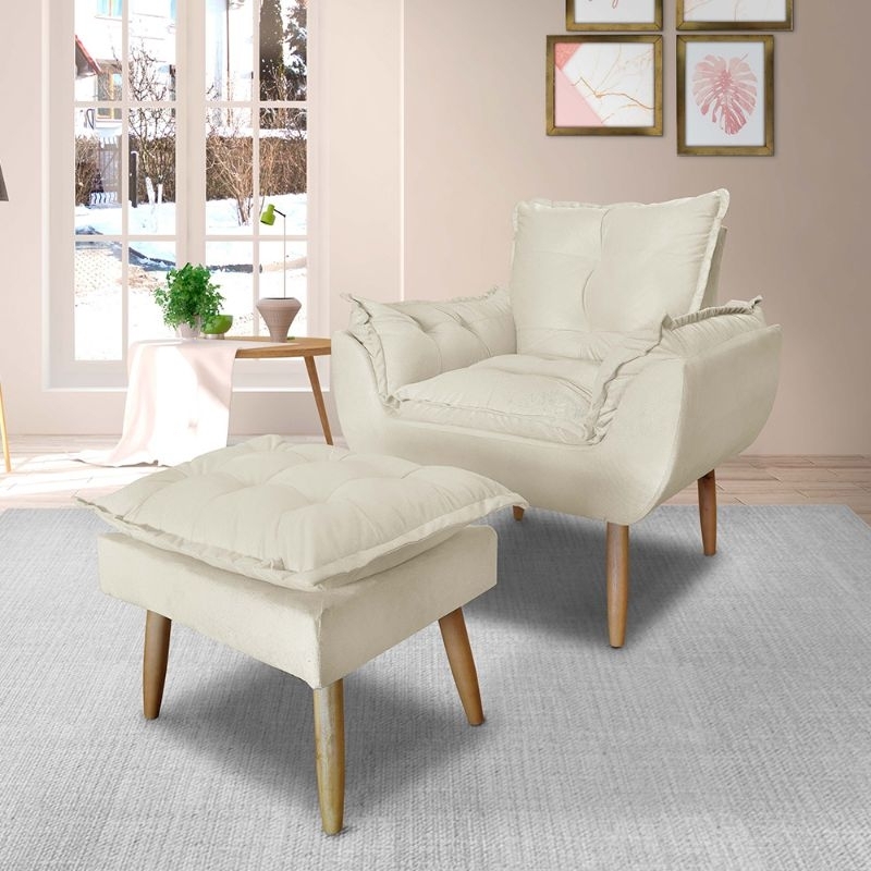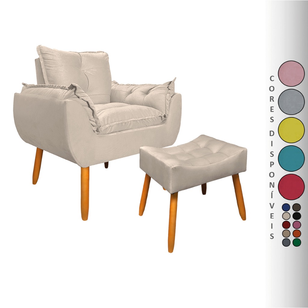 Kit Poltrona Decorativa Opala Deluxe Com Puff Suede