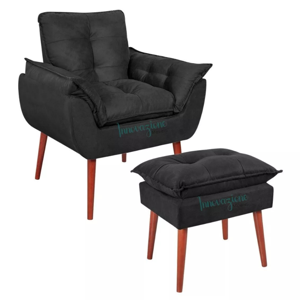 Kit Poltrona Decorativa Opala Com Puff Deluxe Em Suede Cor preto