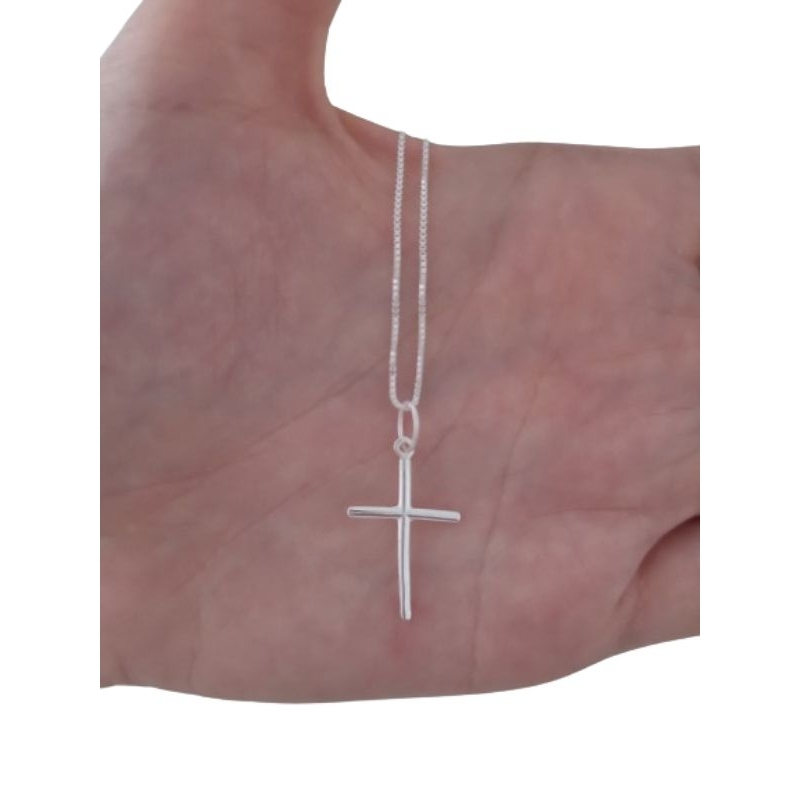 Colar Pingente Cruz 50 cm - Prata 925 Legítima - Corrente Veneziana Crucifixo - Feminino e Masculino