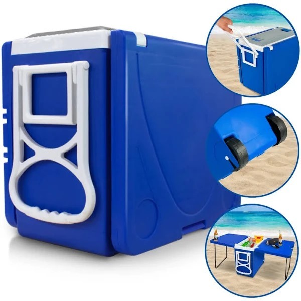 SUPER CAIXA TÉRMICA COM RODINHAS MULTIFUNCIONAL COOLER, 3 EM 1 OU 5 EM 1 - 32 LITROS