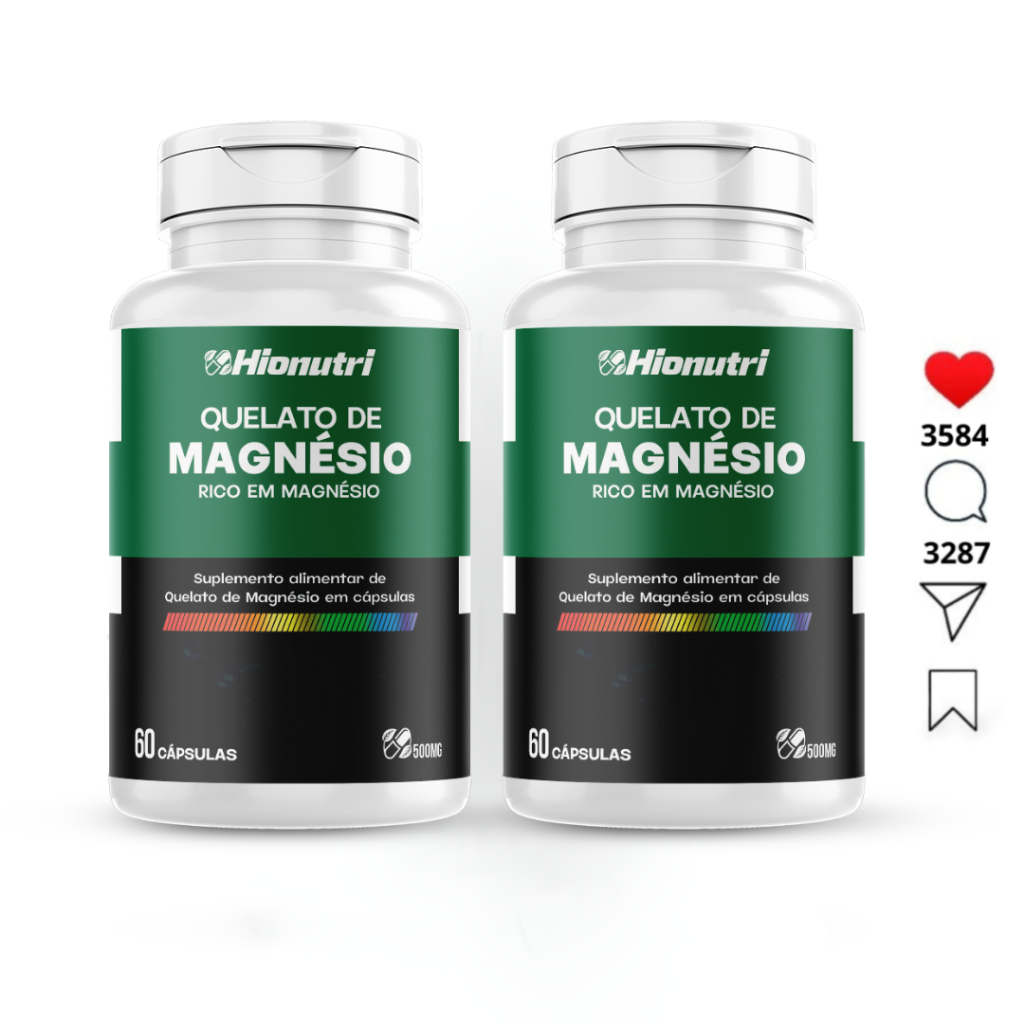 Kit 2 Pote 60 capsulas De Quelato De Magnésio 500Mg