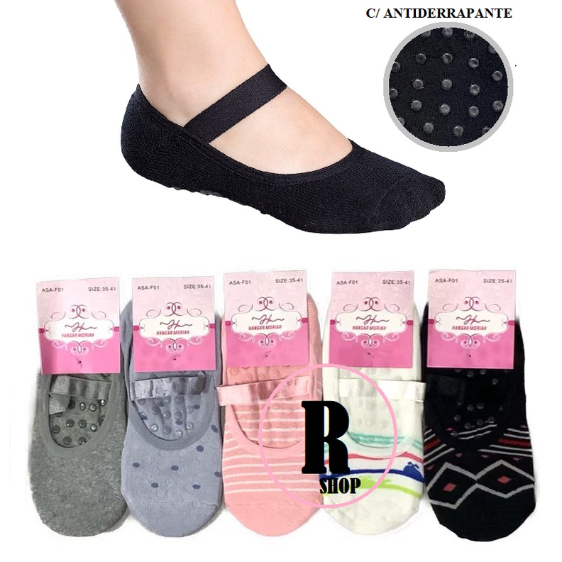 Par / Kit de Meia Sapatilha Pilates Feminina Antiderrapante 35-40