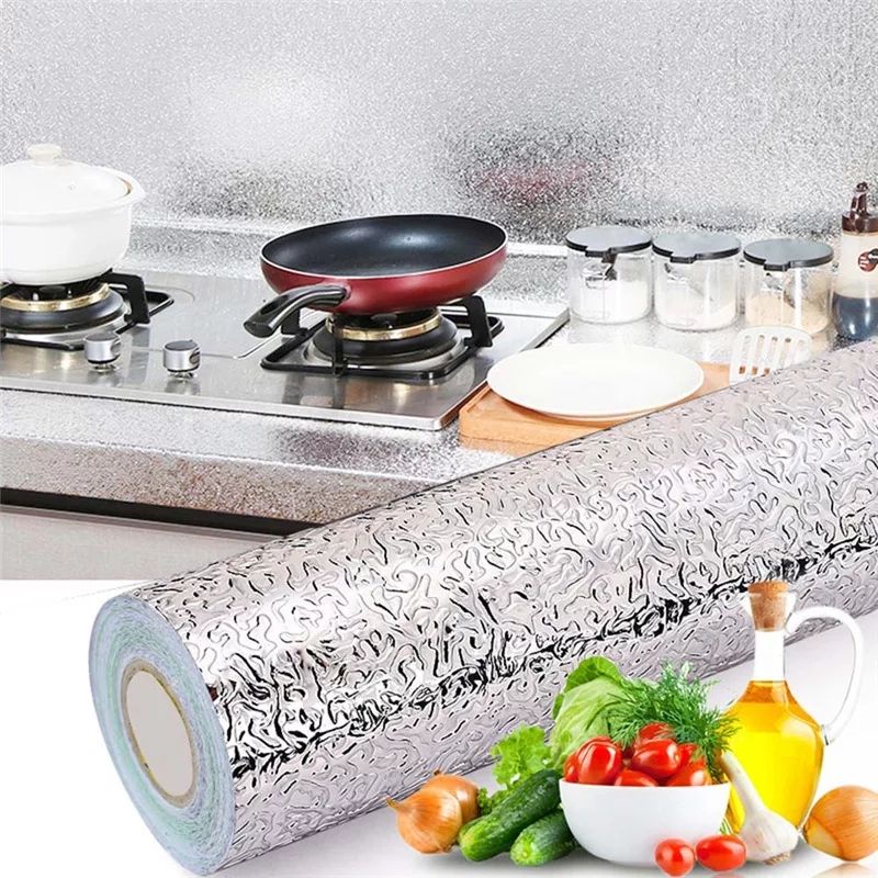 Adesivo de alumínio de cozinha à prova d'água, adesivo de múltiplos tamanhos com papel de parede autoadesivo para fogão de cozinha e armário