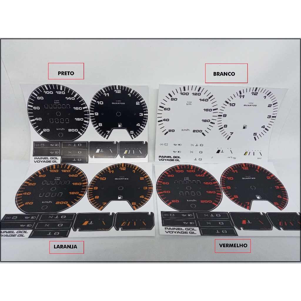 Kit Adesivo Painel De Instrumentos Gol, Voyage, Parati - Gl - Padrão Mod. VDO (Vinil para Restauração / Personalização) Cores: (Preto Mod. Original), Branco, (Vermelho Mod. GTI) e Laranja.