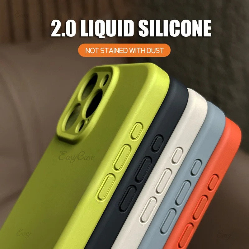 Capa De Silicone Líquido De Luxo 2.0 Para iPhone 11 12 13 14 15 16 Capas Pro Max 15 Plus Protetora De Lente Completa À Prova De Choque