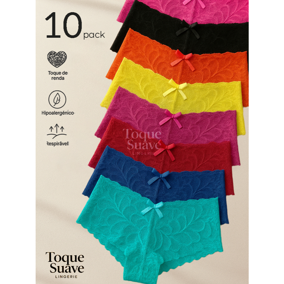 Kit Calcinhas Feminina Caleçon Shortinho de Renda Sexy e Confortável Várias Cores