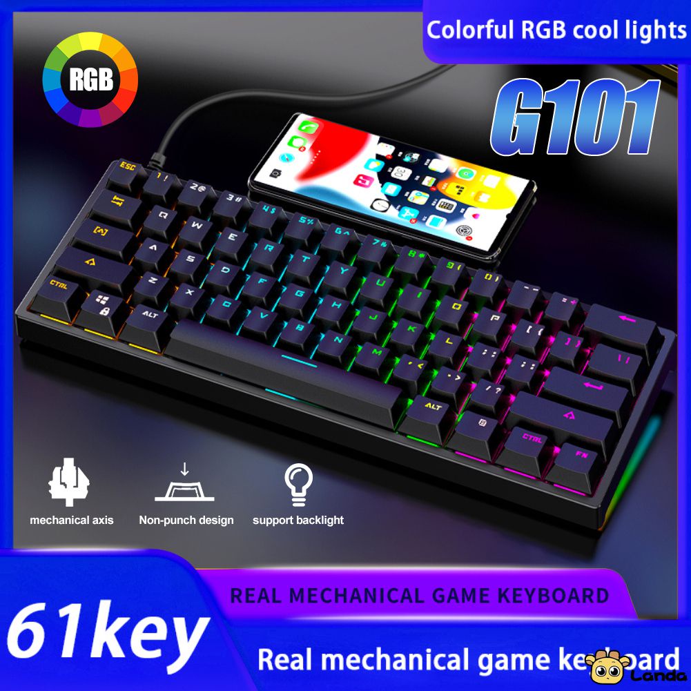 G101 Mini Fio Usb Luminosa Teclado Para Jogos Teclado Mecânico Com Tipo-c 61 Teclado Backlit Eixo Azul Led Rgb/teclas do computador LANDA