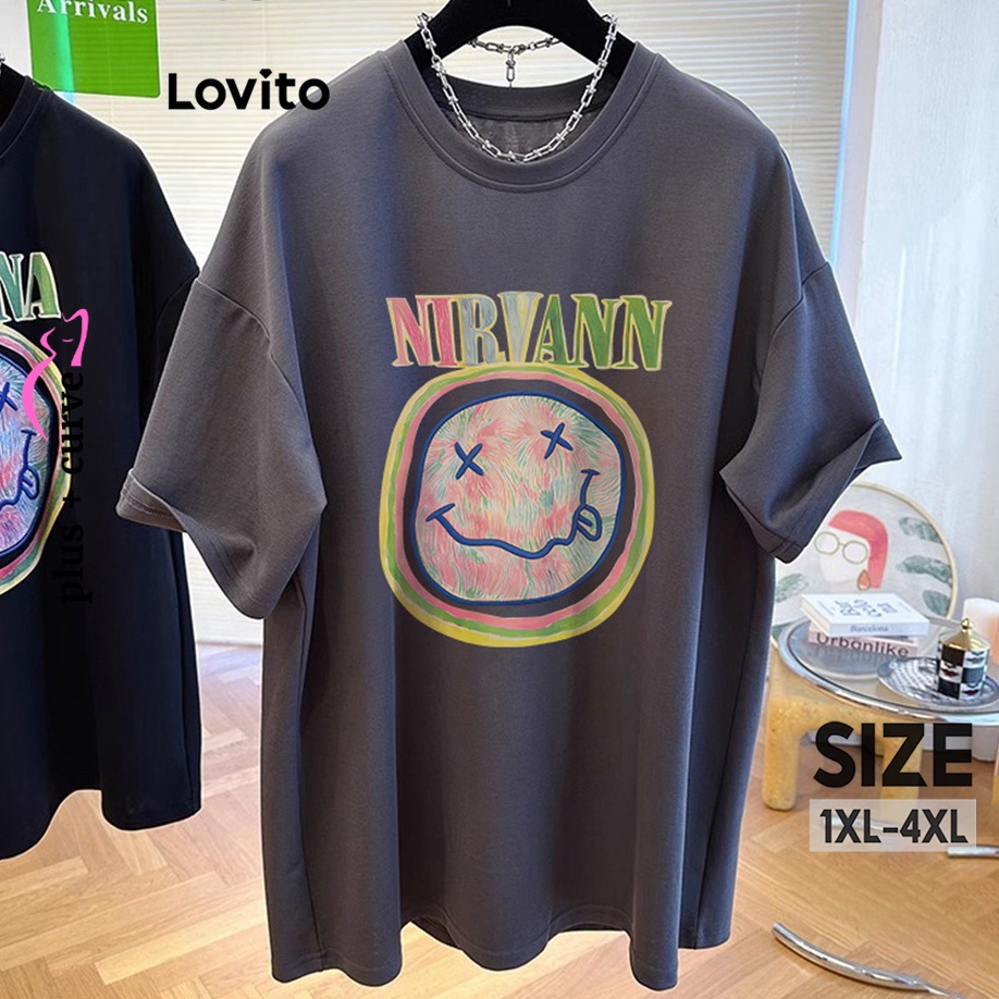 Lovito Camiseta Feminina Plus Size Curva Casual Com Padrão Liso LNE39480 (Cinza/Branco/Preto)