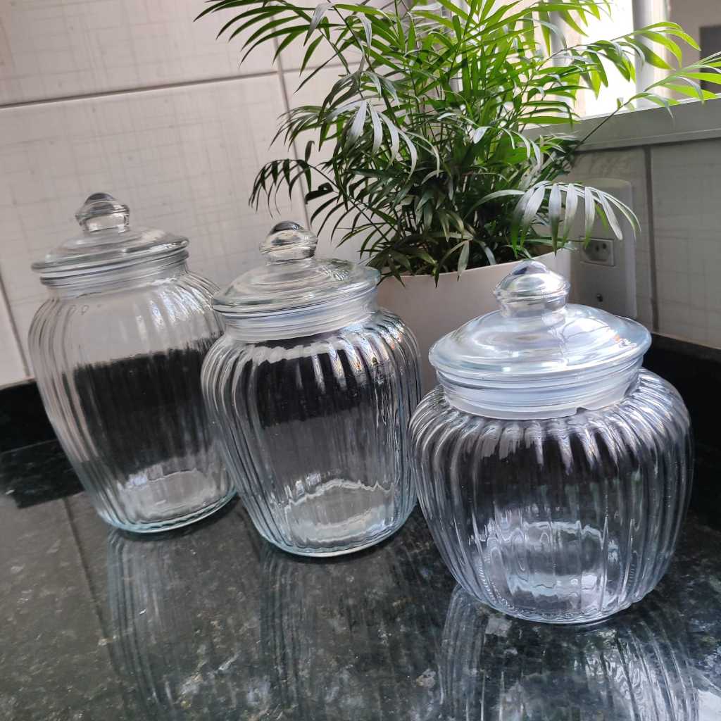 Kit Pote de vidro com tampa ( capacidade 2,4litros,1.9litros e 1,4 litros)