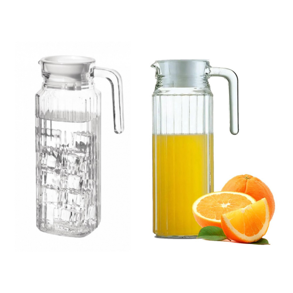 KIT 2 JARRAS DE VIDRO COM TAMPA P/ AGUA CHÁ SUCO 1,1 LITROS