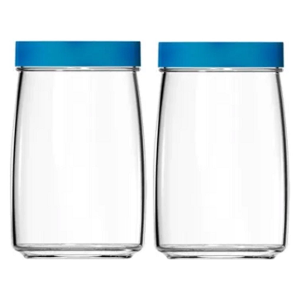 Kit 2 Pote De Vidro Mandacaru Liso Com Tampa 1,2 Litros Azul