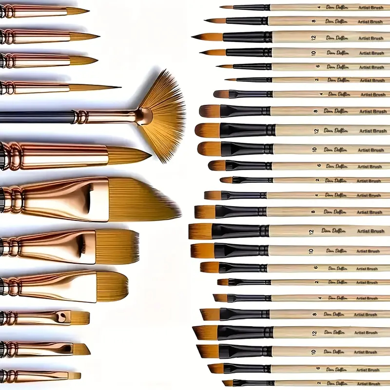 Conjunto De Pincéis De Pintura Profissional 32 Unidades-Cerdas De Nylon De Vários Tamanhos Para Óleo/Água/Acrílico/Art