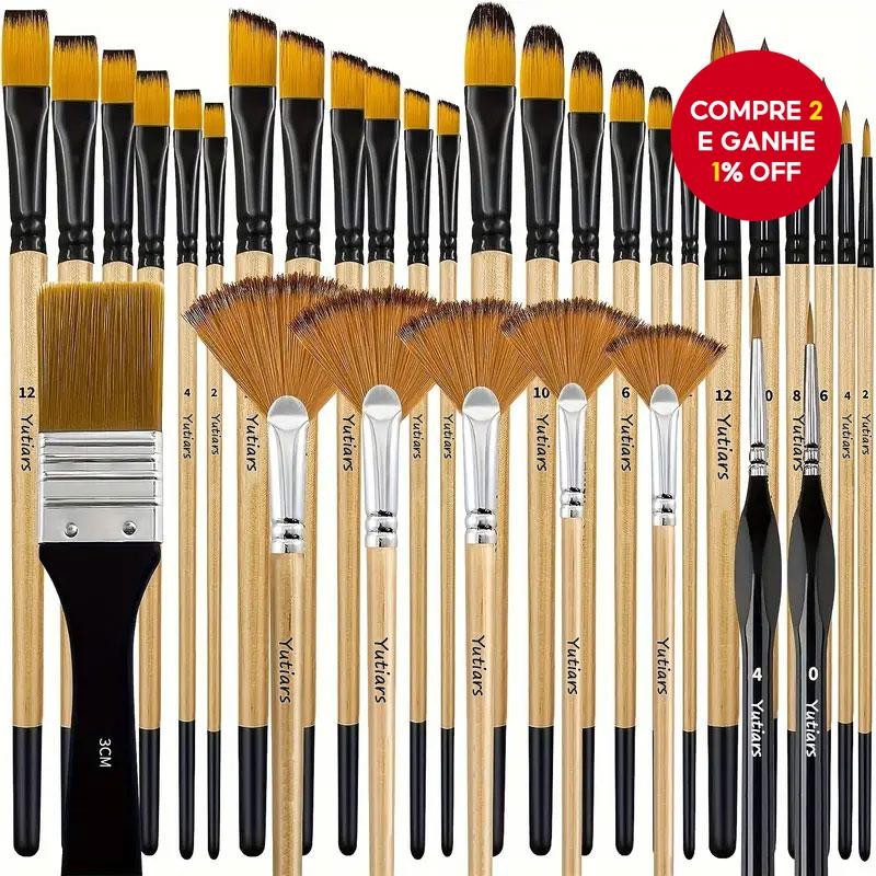 32pcs Conjunto De Pincéis Para Pintura Plana Artista Acrílicos A Óleo Aquarela