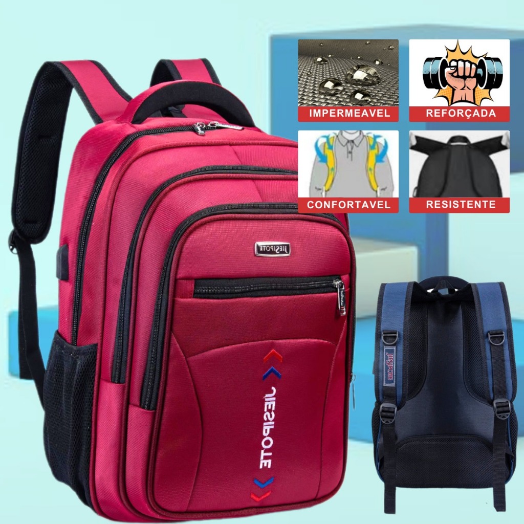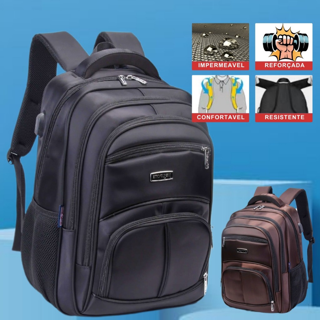 Mochila Masculina Impermeável Reforçada Resistente Para Trabalho Faculdade Viagem Escola Colégio Para Notebook