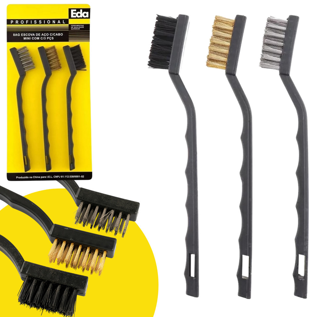 Kit 3 Escova Limpeza Eda Com Cabo Cerdas De Nylon Aço Latão 8AG