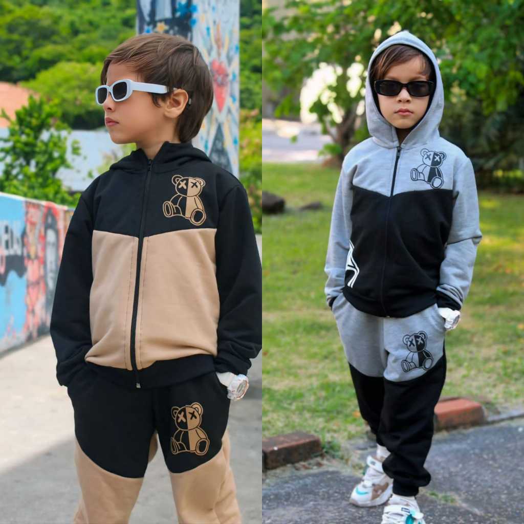 Kit Dois Conjuntos Masculinos Agasalho Menino Inverno Kit Abrigo Com Capuz Ou Sem. (4 ao 14 anos)