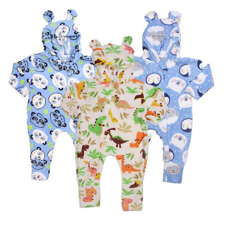 Kit 3 Macações Ziper New Soft Com Capuz E Orelinha Para Bebe Menino E Menina
