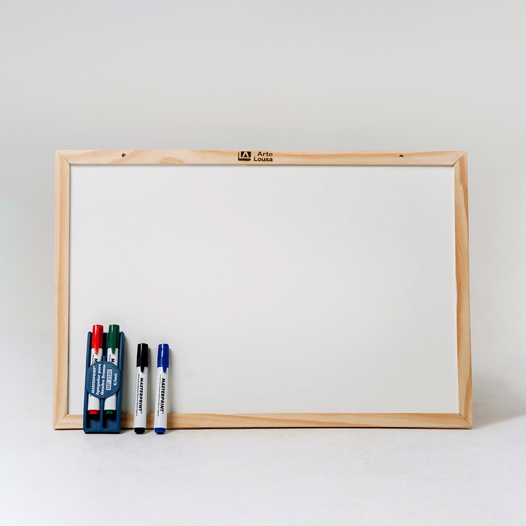 Quadro branco 60X40 - Moldura em Madeira - Lousa Bem Lisinha e Fácil de Apagar + Kit Conjunto Pincel Caneta Piloto Para Quadro Branco 4 Cores com Apagador