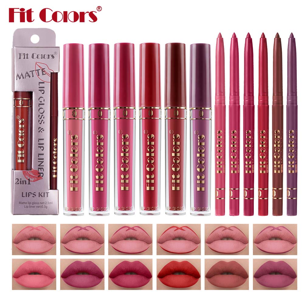 QIBEST 3Pcs Batom Líquido Mate + Forro Labial + Conjunto De Brilho Maquiagem Nua Longa Duração Copo Antiaderente Kit De Cosméticos De Tonalidade Vermelho Para Mulheres Beleza 12 Cores
