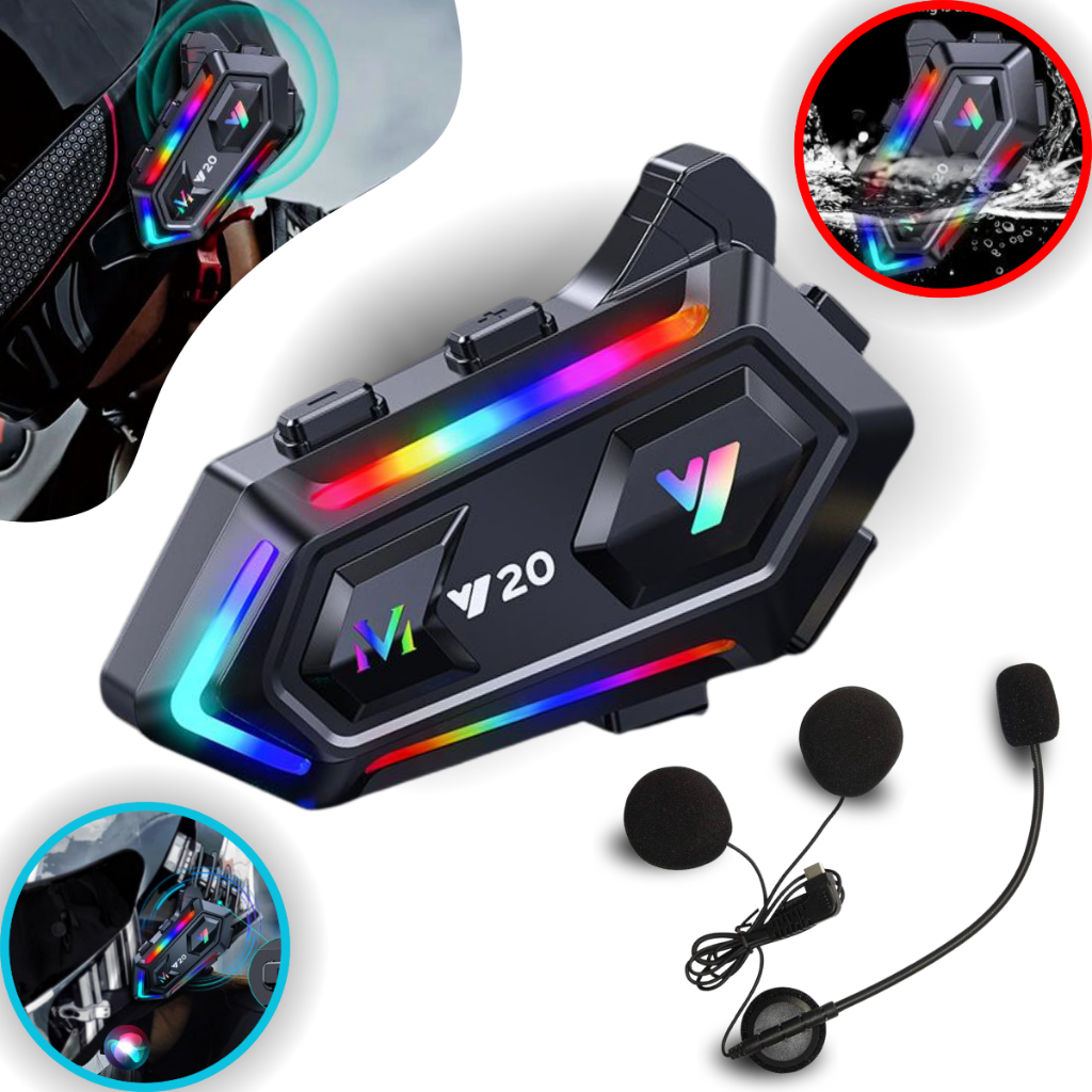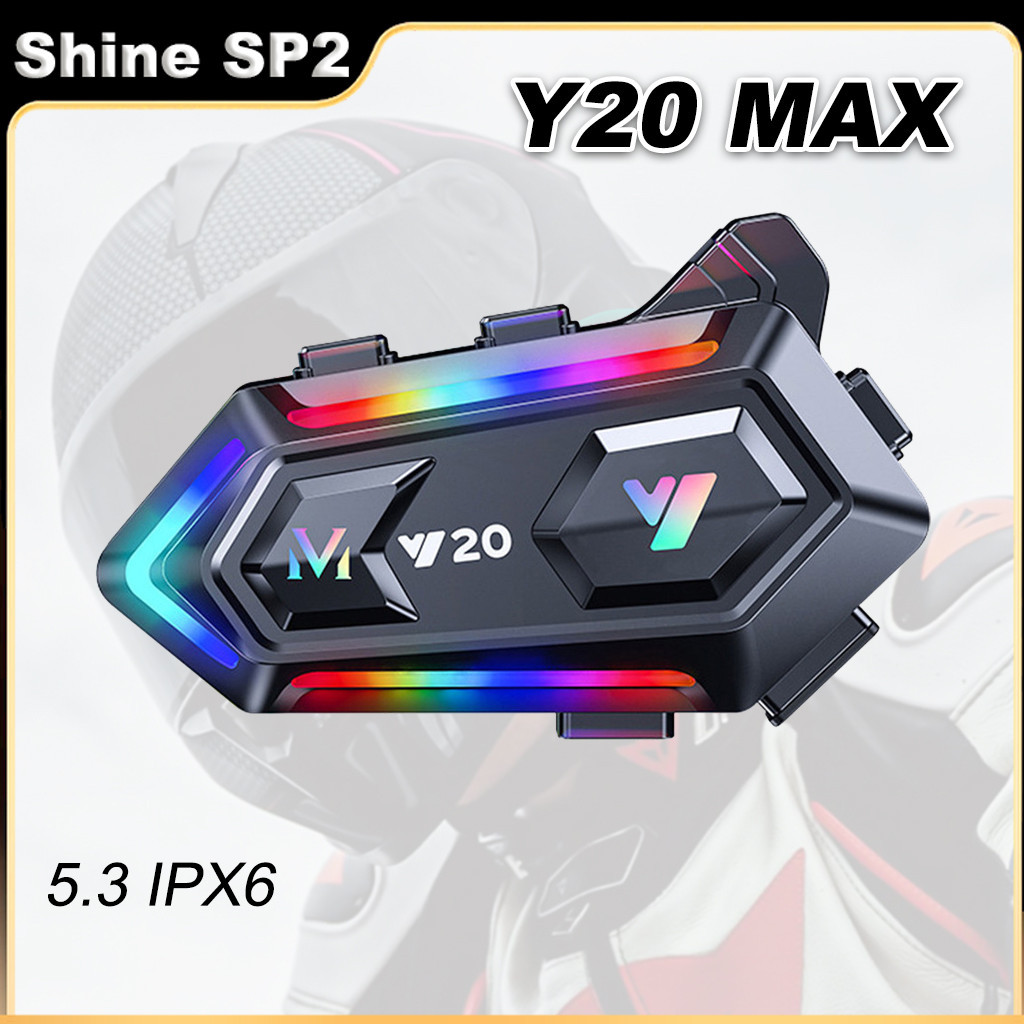 Y20 MAX Interfone Sem Fio Capacete Da Motocicleta Fone De Ouvido Bluetooth 5.3 IPX6 À Prova Dwaterproof Água RGB Con