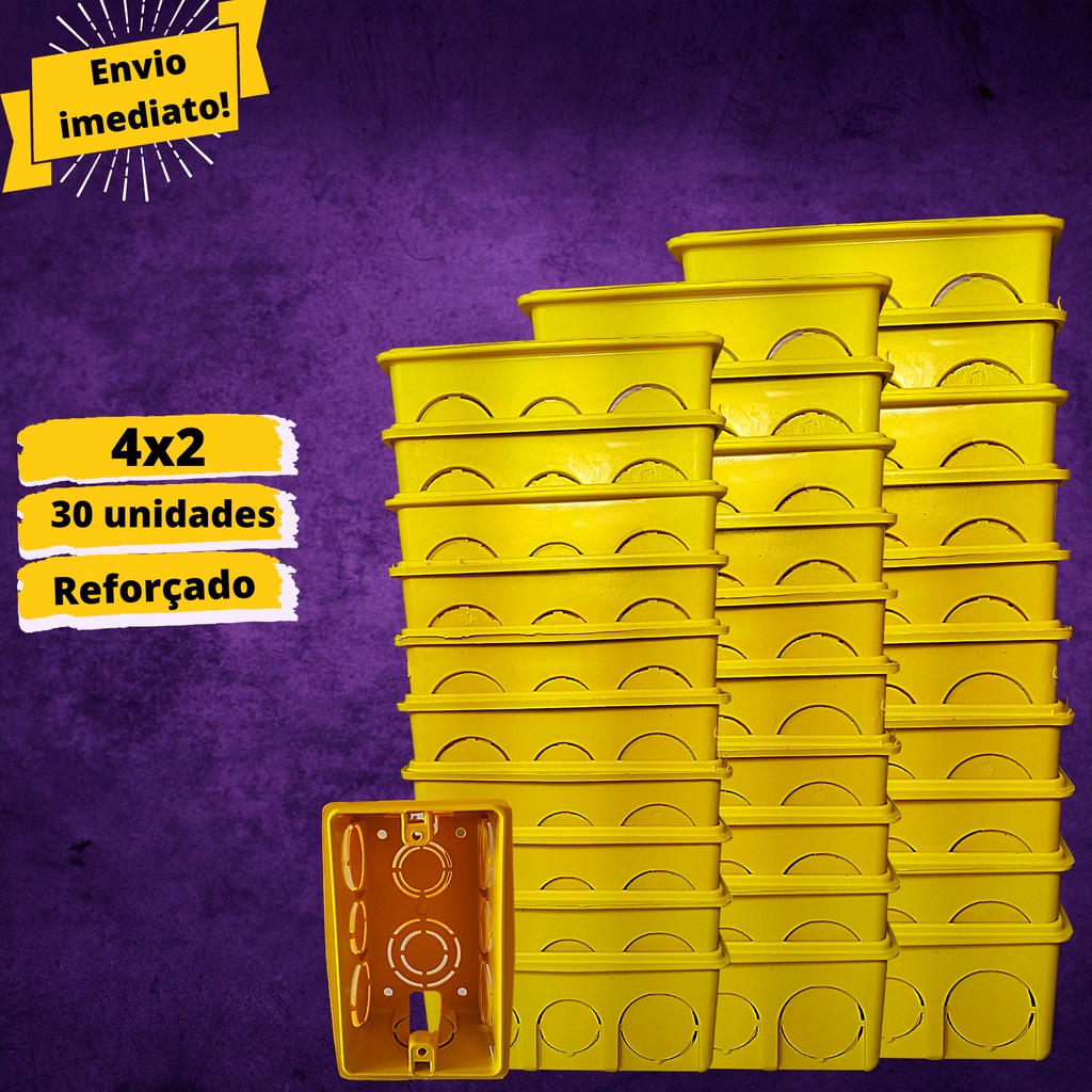 Kit 30 Caixinhas de Luz Reforçadas p/ Tomada/Interruptor 4x2 Amarela