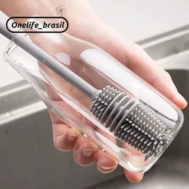 Escova para Lavar Mamadeiras Copos Garrafas Jarras Taças possui Cabo Longo de Silicone
