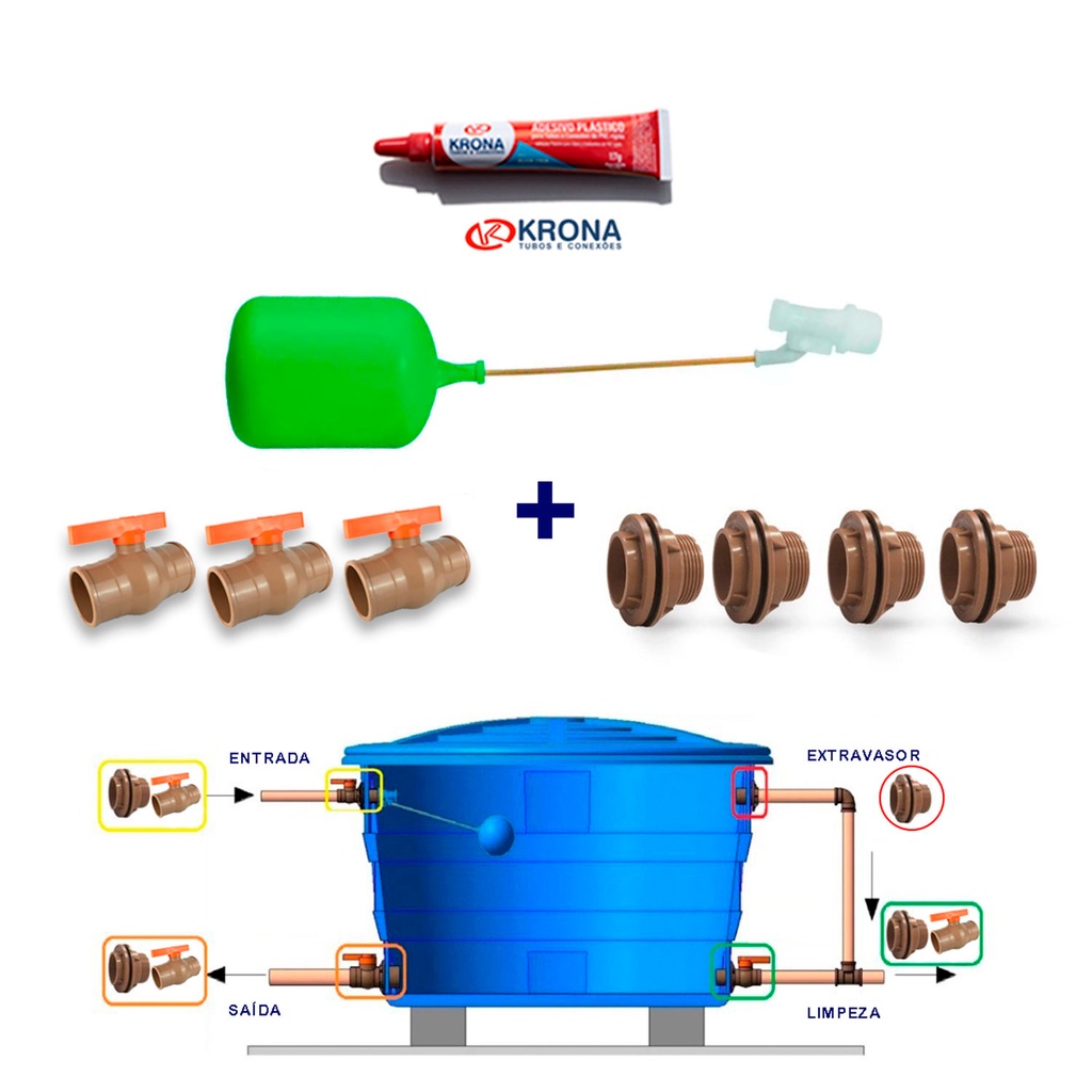 KIT CONEXÃO PARA INSTALAÇÃO DE CAIXA D' ÁGUA PREMIUM 50mm
