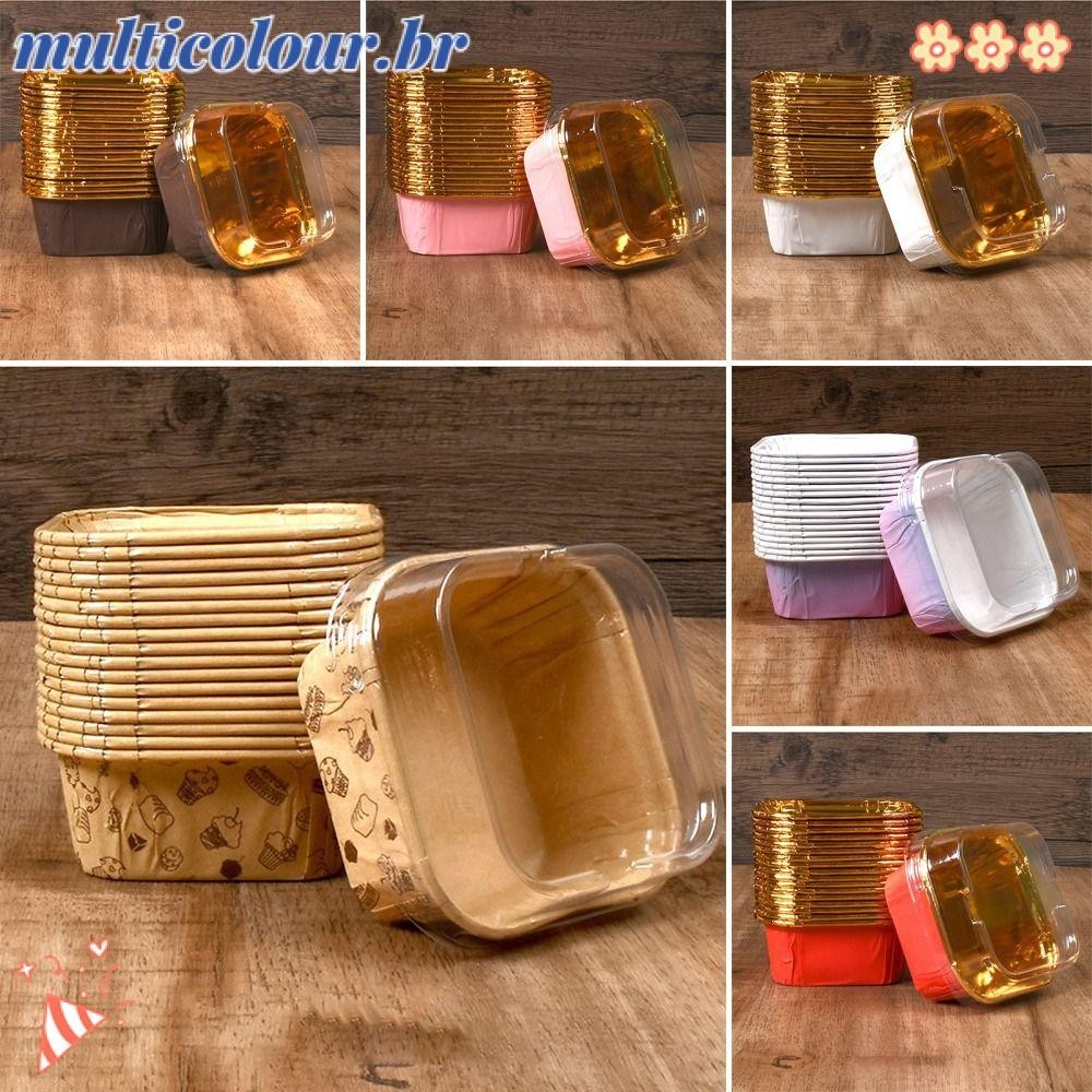 MULTICOLOUR 50Pcs Muffin Cupcake , Copos De Papel De Bandeja Quadrada Para Festas , Decoração De Bolos De Aniversário Cartas Marrons Forro De Dourado