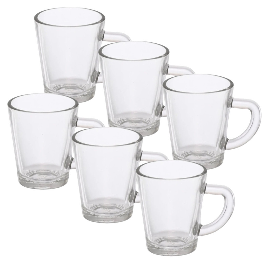 Kit 6 Xicara Caneca Copo De Vidro Transparente Café Chá Cappuccino Alça 90ml