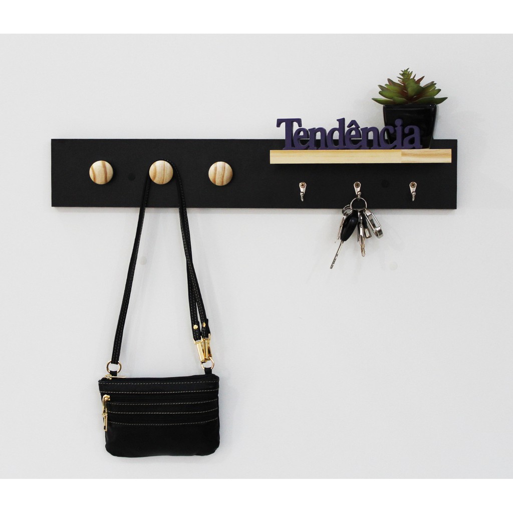 Porta Chaves Mdf de Parede Preto Decoração Sala Casa Organizador Chaveiro