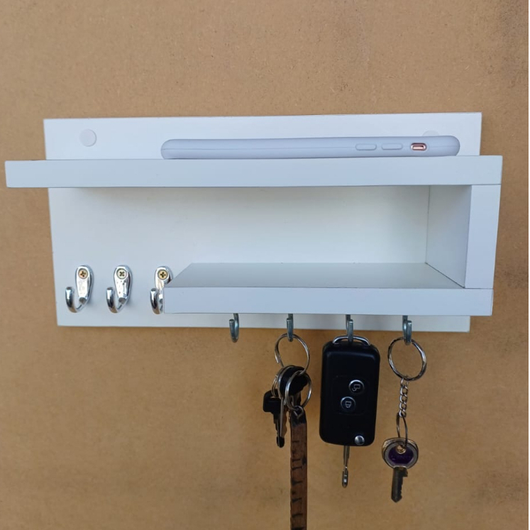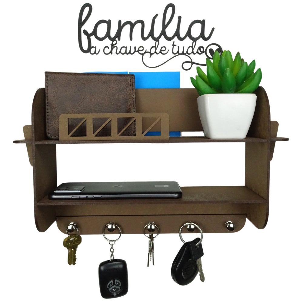 Porta Chaves com prateleira para carteira óculos celular Chaveiro Organizador 100% MDF