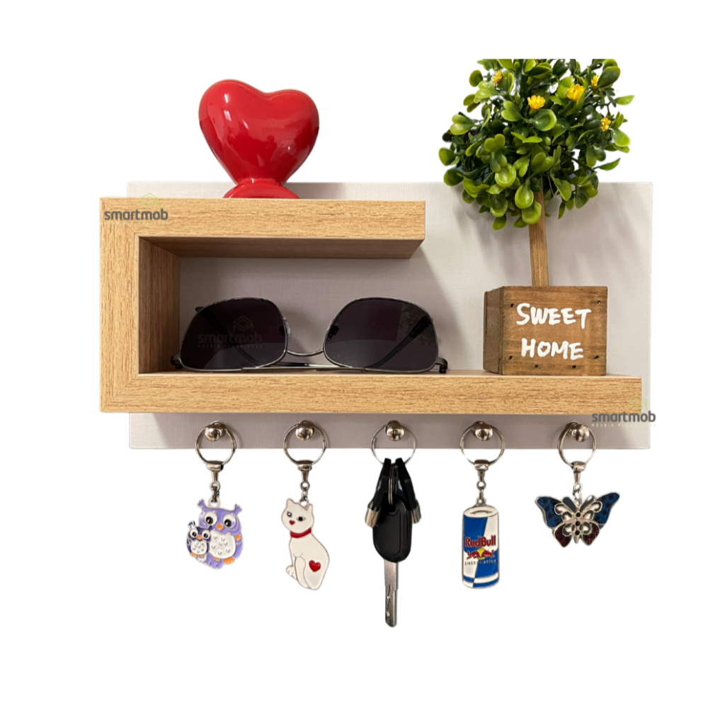 Porta Chave De Parede Organizador MDF Com Prateleira para Óculos e Carteira