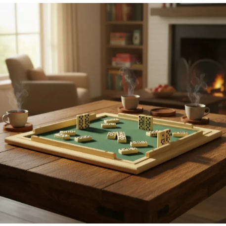 Tabuleiro de Mesa Para DOMINÓ Com Feltro Verde 66x66 cm