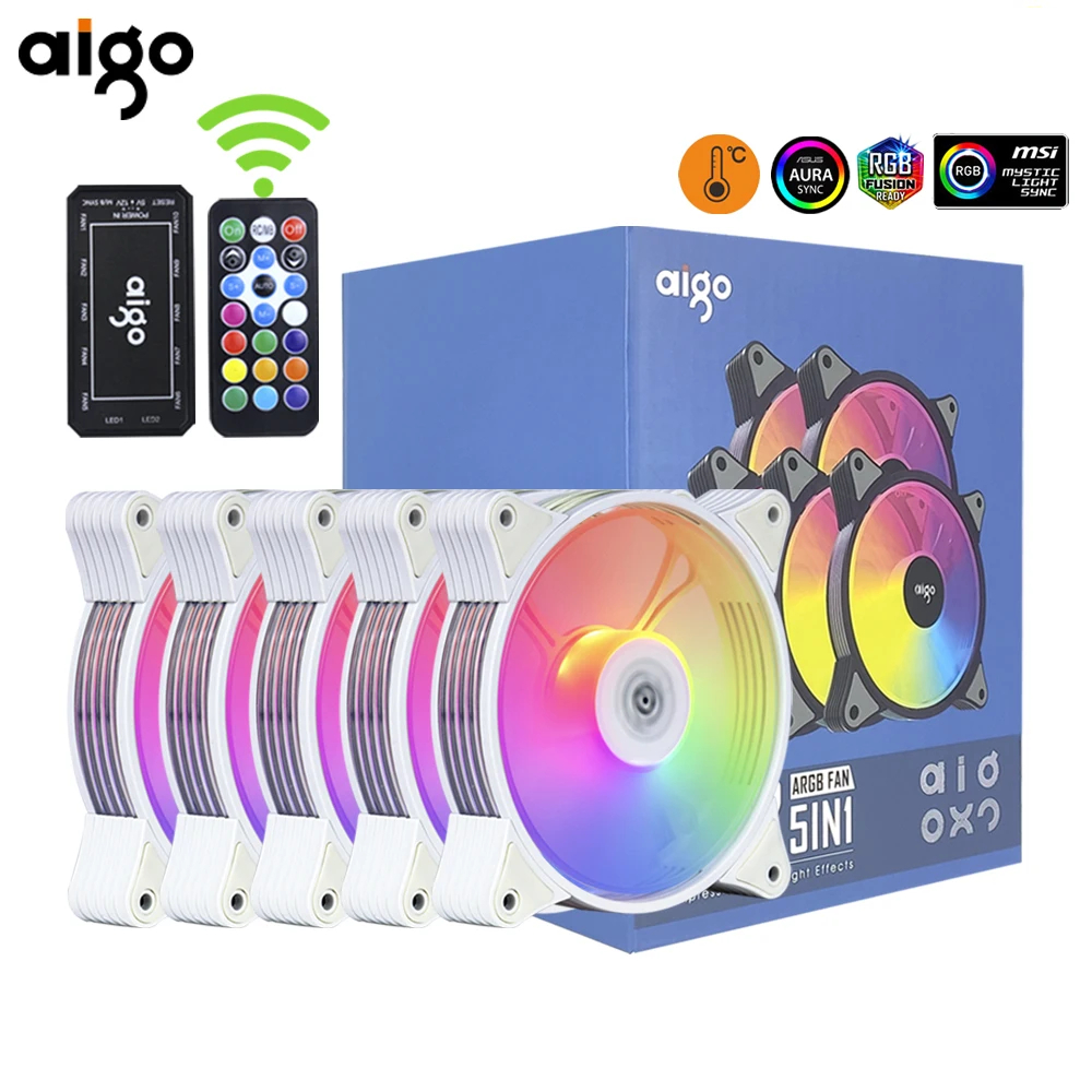 Kit com 5 Fans Argb Aigo Ar12 Pro + Controladora, Coolers Rgb *Novos / Pc Gamer Computador Gabinete Desktop Cooler Fan DarkFlash Pwm 5v